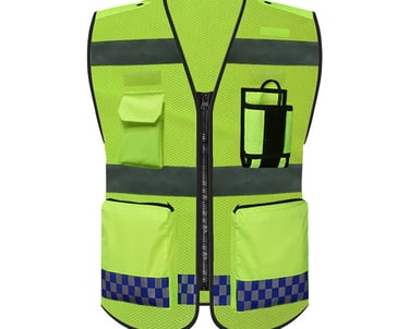 A vibrant display of high-visibility reflective clothing for outdoor safety.